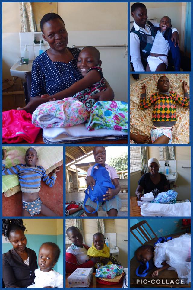 De moeders van de therapie konden we verrassen met de donatie van de wasbare luierbroekjes. We kregen ze gedoneerd van www.nappy’s.nl. Het bespaart de moeders veel geld. Dank je wel Nappy’s! De schoolvakantie is deze week begonnen en zuster Marcella bracht 12 kinderen vanuit Awasi, waar het schoolinternaat voor meervoudig gehandicapte kinderen staat, naar Kisumu. Ze leende daarvoor de ziekenauto, legde de vloer vol matrassen, alle kinderen op een rijtje en de rit naar Kisumu kon beginnen. Wij stonden hen met de moeders op te wachten. Een geweldig gezicht, daarna wordt het laatste stuk naar huis per brommer, tuktuk of bus afgelegd.
