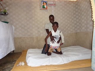 Afgelopen dagen ook alweer verschillende kinderen en moeders gezien bij de therapie. Sommige kinderen hebben zich echt geweldig ontwikkeld in een jaar tijd. Bij anderen gaat de vooruitgang erg langzaam. Vandaag waren we bij een van de kinderen (Emmanuel) op huisbezoek. Hij woont samen met zijn moeder en oma in een klein, maar keurig verzorgd huis in de buurt van het ziekenhuis. Het kleine stukje grond bij het huis wordt gebruikt als groententuin. Volgende week gaan we ver buiten Kisumu op huisbezoek bij Alice. De fysiotherapeut Deril (een van de drie die werkervaring opdoet) bezoekt haar twee keer per week aan huis. Superfijn voor Alice en haar moeder dat therapie aan huis nu mogelijk is.