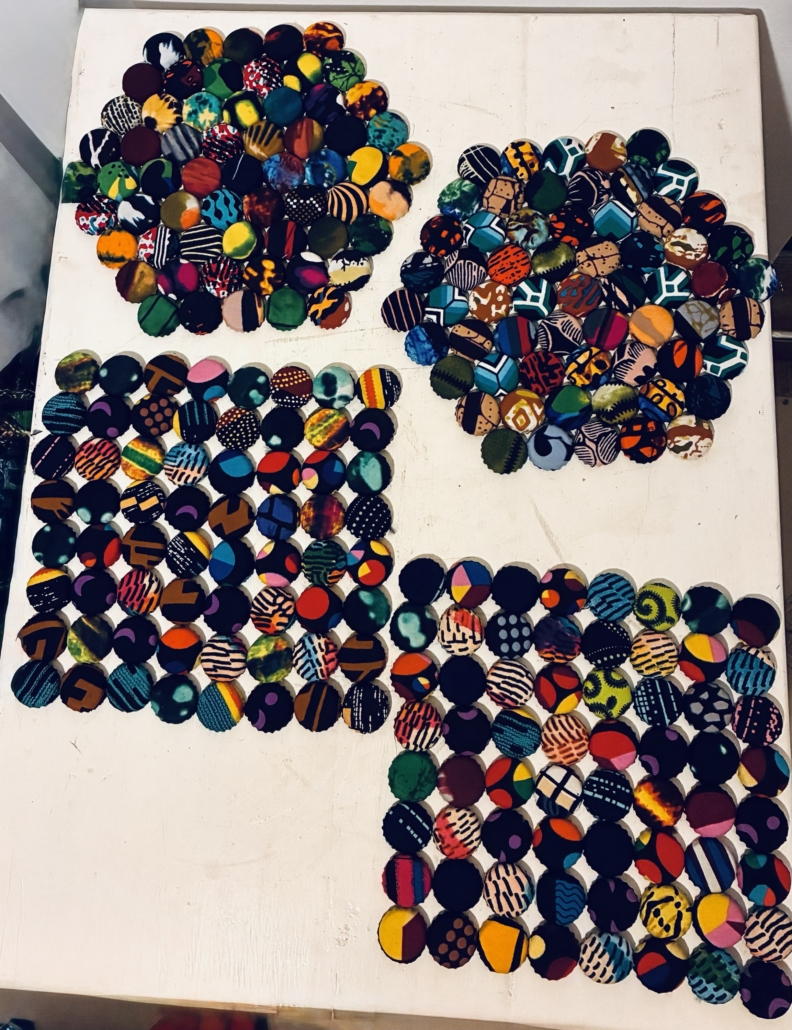 Materiaal: flesdopjes metaal met Afrikaanse stof